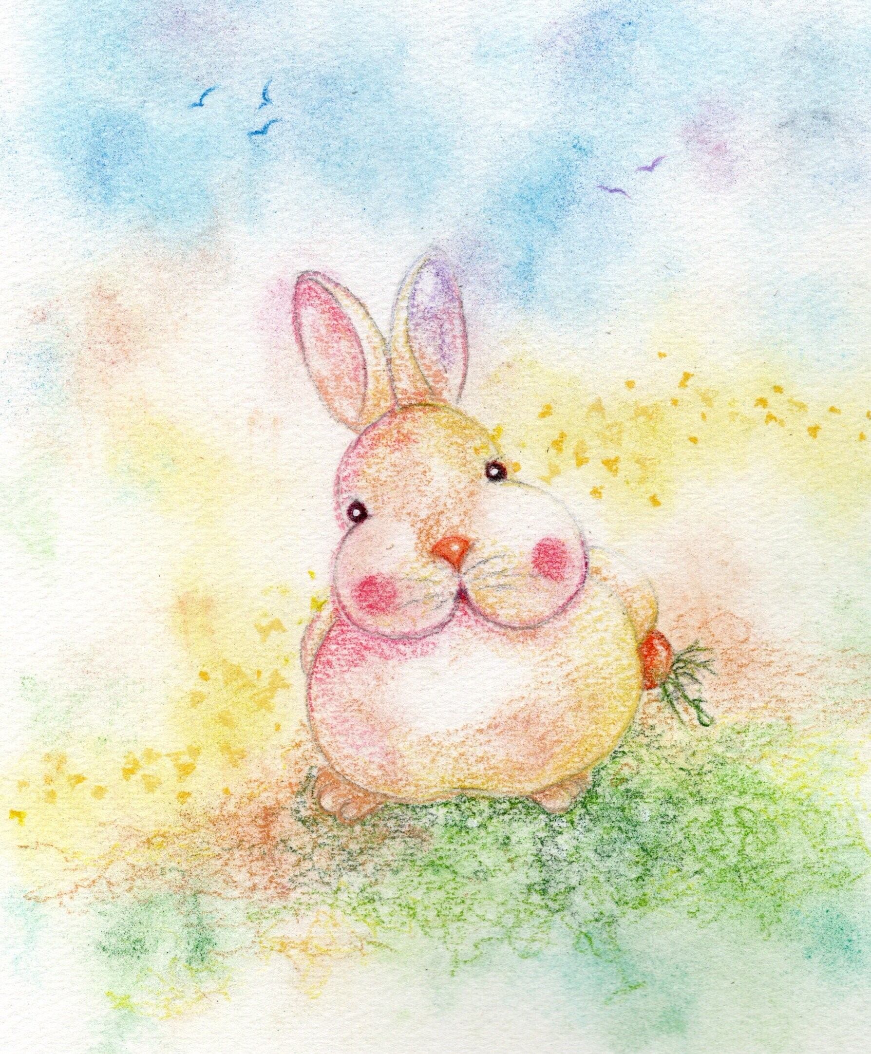 『うさぎさんの秘密』 オリジナルパステルイラスト&マットフレーム