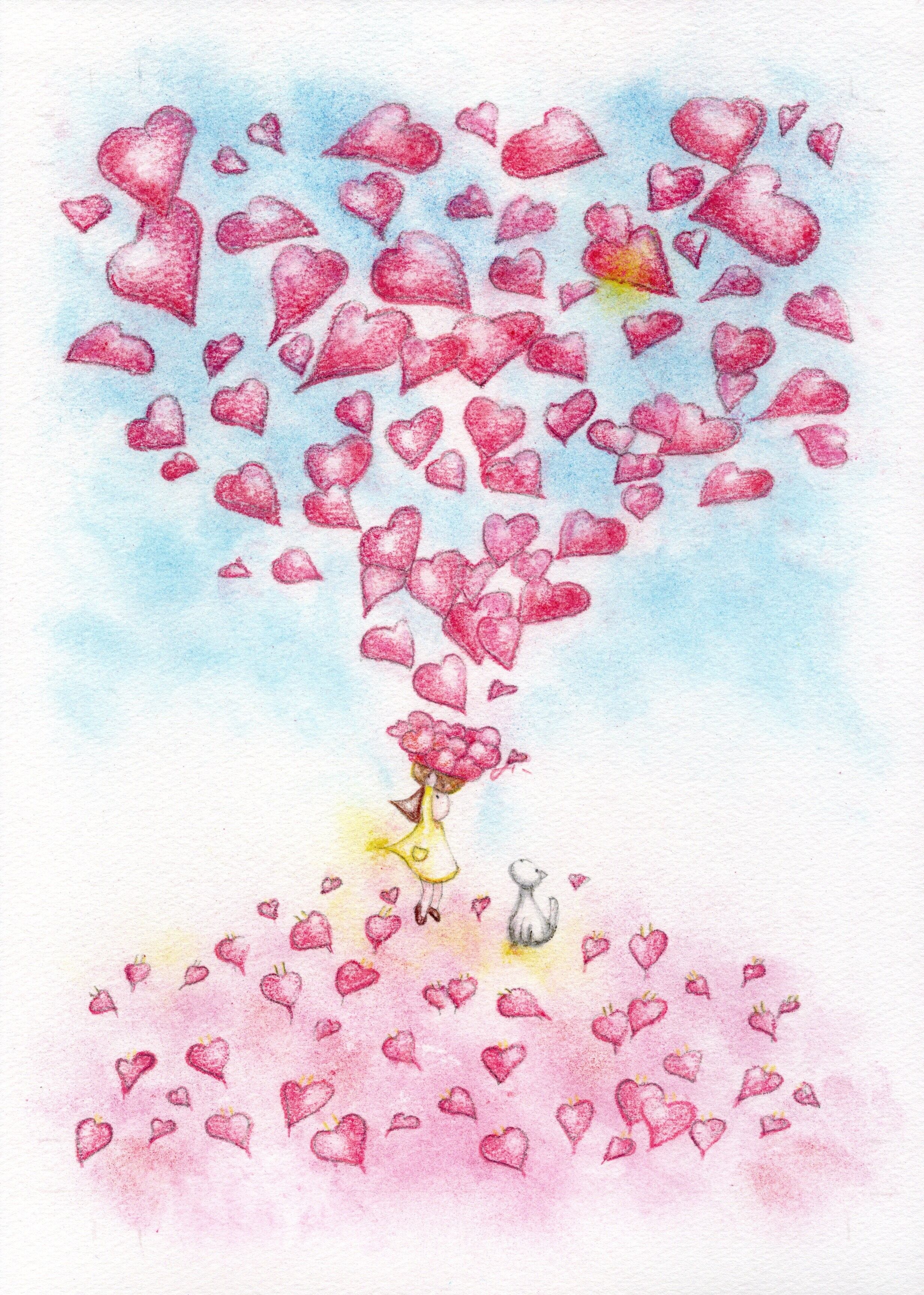 『心いっぱい』 オリジナルパステルイラスト&マットフレーム